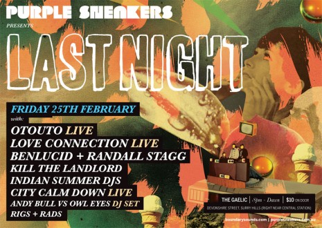 This week at Purple Sneakers’ Last Night the headlining live band is Otouto who are a Melbourne-based band made up of Hazel Brown on guitar and vocals, Kishore Ryan (Kid Sam, Seagull) on drums/pots and Martha Brown on vocals and keys. Their album Pip came out on Remote Contro/Inertia last year and caught a lot of people’s ears with their quirky pop. Before Friday night we threw a few questions the way of Ryan…