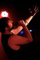Jonny Telafone kicked things off with his kid on overload performance that rivals Donny Benet for its tongue in cheek pastiche, kitchen sink electro and synth pop cheesiness. There is no doubt that Telafone is a great performer even if he is just singing over Suicide-tinged backing tracks from his laptop but with song titles like Make Your Pussy Cum and his exaggerated gyrations and gestures it is hard to keep a straight face. You’d think this would have a limited shelf life but Telafone has been at it for a few years now and ultimately it is highly entertaining stuff.